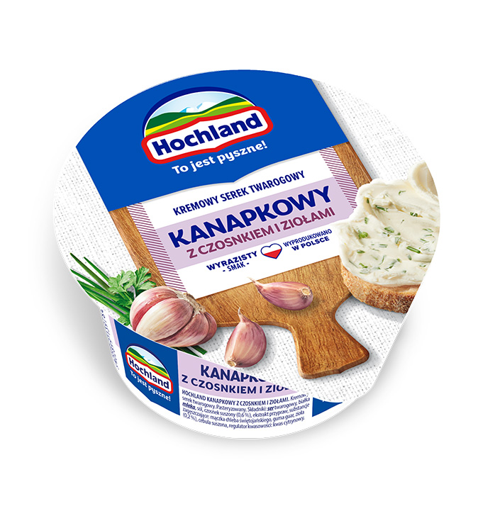 Kremowy serek twarogowy Hochland Kanapkowy z czosnkiem i ziołami to wyjątkowa kompozycja o intensywnym smaku i aromacie. Poczuj prawdziwy smak wyrazistych dodatków, który nada Twojej kanapce niezwykłego charakteru.
